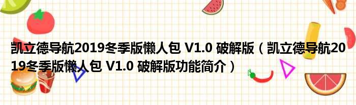 凯立德导航2019冬季版懒人包 V1.0 破解版(凯立德导航2019冬季版懒人包 V1.0 破解版功能简介)