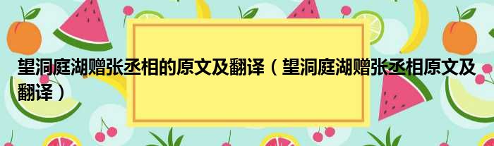 望洞庭湖赠张丞相的原文及翻译(望洞庭湖赠张丞相原文及翻译)