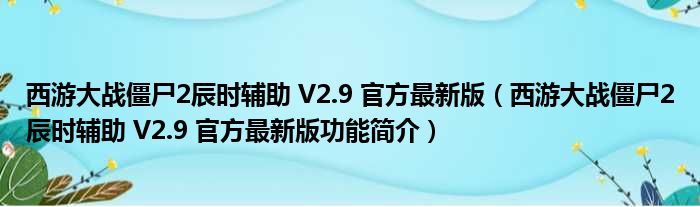 西游大战僵尸2辰时辅助 V2.9 官方最新版(西游大战僵尸2辰时辅助 V2.9 官方最新版功能简介)