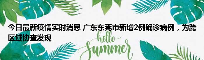 今日最新疫情实时消息 广东东莞市新增2例确诊病例,为跨区域协查发现