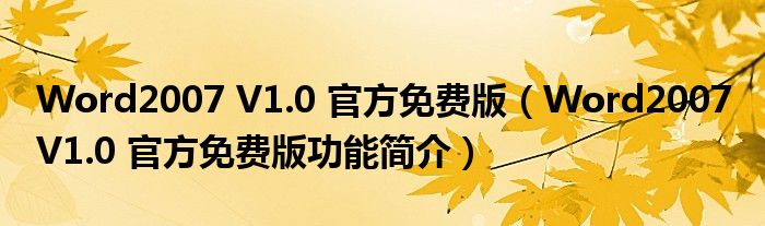 Word2007 V1.0 官方免费版(Word2007 V1.0 官方免费版功能简介)