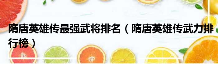 隋唐英雄传最强武将排名(隋唐英雄传武力排行榜)