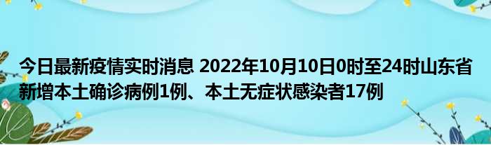您的位置:首页 >房产频道 > 综合精选 > 今日最新疫情实时消息 2022年10月10日0时至24时山东省新增本土确诊病例1例、本土无症状感染者17例 2022-10-11 23:46:04 • 来源: 导读 免责声明:本文由用户上传,如有侵权请联系删除! 上一篇:三次产业结构变动的基本规律和动因是什么? 下一篇:电脑显示administrator已锁定怎么关闭