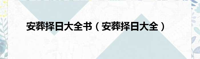 大家好,今天小六子来为大家解答以下的问题,关于安葬择日大全书,安葬择日大全这个很多人还不知道,现在让我们一起来看看吧!