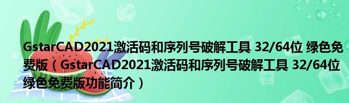 GstarCAD2021激活码和序列号破解工具 32/64位 绿色免费版(GstarCAD2021激活码和序列号破解工具 32/64位 绿色免费版功能简介)