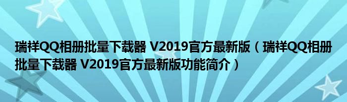 导读 大家好,关于瑞祥QQ相册批量下载器 V2019官方最新版,瑞祥QQ相册批量下载器 V2019官方最新版功能简介这个很多人还不知道,小勒来为大家解答
