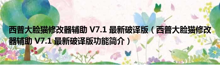西普大脸猫修改器辅助 V7.1 最新破译版(西普大脸猫修改器辅助 V7.1 最新破译版功能简介)