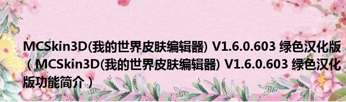 MCSkin3D(我的世界皮肤编辑器) V1.6.0.603 绿色汉化版(MCSkin3D(我的世界皮肤编辑器) V1.6.0.603 绿色汉化版功能简介)
