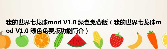导读 大家好,关于我的世界七龙珠mod V1 0 绿色免费版,我的世界七龙珠mod V1 0 绿色免费版功能简介这个很多人还不知道,小勒来为大家解答以上