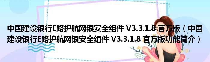 中国建设银行E路护航网银安全组件 V3.3.1.8 官方版(中国建设银行E路护航网银安全组件 V3.3.1.8 官方版功能简介)