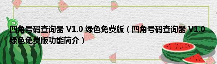 四角号码查询器 V1.0 绿色免费版(四角号码查询器 V1.0 绿色免费版功能简介)