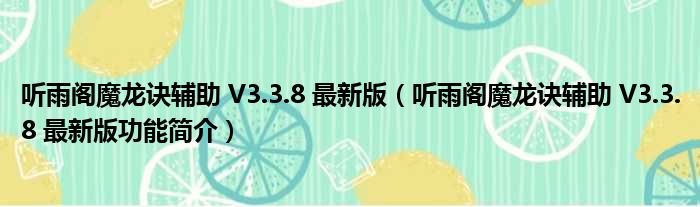 听雨阁魔龙诀辅助 V3.3.8 最新版(听雨阁魔龙诀辅助 V3.3.8 最新版功能简介)
