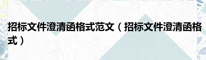 导读 大家好,今天小六子来为大家解答以下的问题,关于招标文件澄清函格式范文,招标文件澄清函格式这个很多人还不知道,现在让我们一起来看看吧