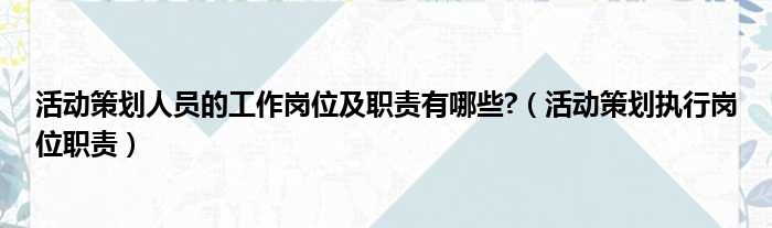 活动策划人员的工作岗位及职责有哪些?(活动策划执行岗位职责)