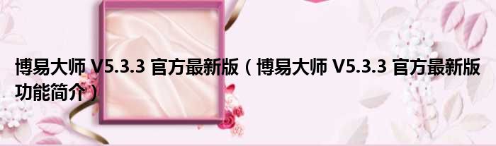 导读 大家好,关于博易大师 V5 3 3 官方最新版,博易大师 V5 3 3 官方最新版功能简介这个很多人还不知道,小勒来为大家解答以上的问题,现在让