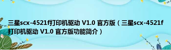 三星scx-4521f打印机驱动 V1.0 官方版(三星scx-4521f打印机驱动 V1.0 官方版功能简介)