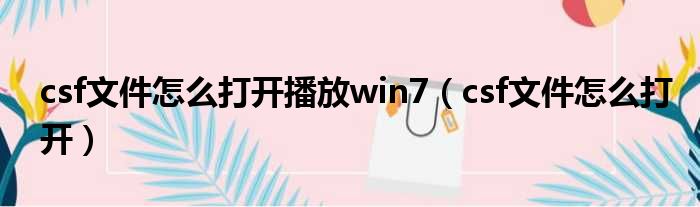 csf文件怎么打开播放win7(csf文件怎么打开)
