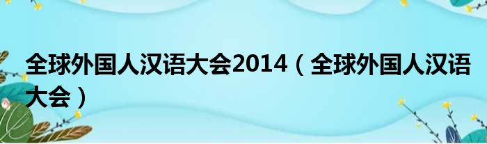 全球外国人汉语大会2014(全球外国人汉语大会)