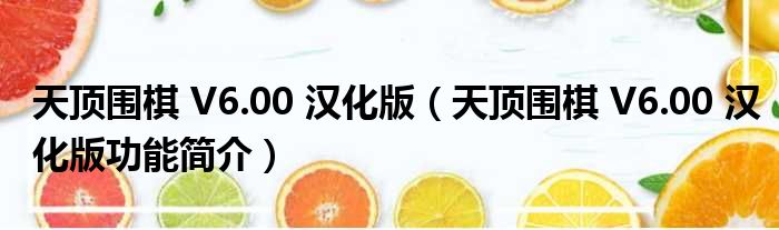 天顶围棋 V6.00 汉化版(天顶围棋 V6.00 汉化版功能简介)