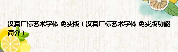 汉真广标艺术字体 免费版(汉真广标艺术字体 免费版功能简介)