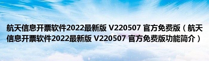 航天信息开票软件2022最新版 V220507 官方免费版(航天信息开票软件2022最新版 V220507 官方免费版功能简介)