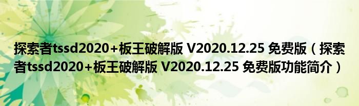 探索者tssd2020+板王破解版 V2020.12.25 免费版(探索者tssd2020+板王破解版 V2020.12.25 免费版功能简介)