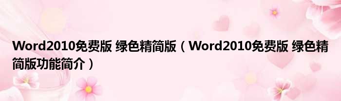 Word2010免费版 绿色精简版(Word2010免费版 绿色精简版功能简介)