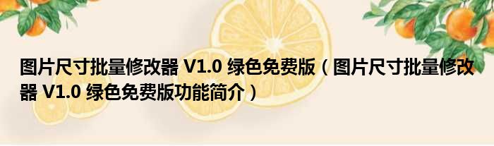 图片尺寸批量修改器 V1.0 绿色免费版(图片尺寸批量修改器 V1.0 绿色免费版功能简介)