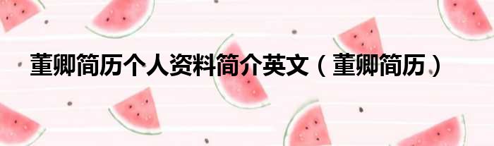 导读 大家好,今天小六子来为大家解答以下的问题,关于董卿简历个人资料简介英文,董卿简历这个很多人还不知道,现在让我们一起来看看吧!1、董卿