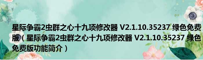 星际争霸2虫群之心十九项修改器 V2.1.10.35237 绿色免费版(星际争霸2虫群之心十九项修改器 V2.1.10.35237 绿色免费版功能简介)