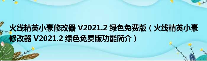 火线精英小豪修改器 V2021.2 绿色免费版(火线精英小豪修改器 V2021.2 绿色免费版功能简介)