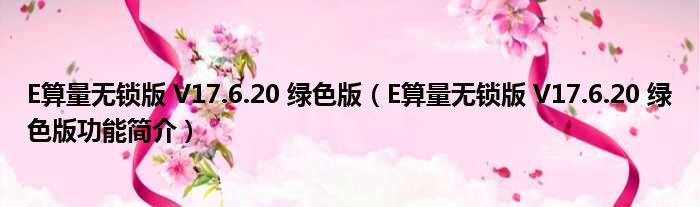 E算量无锁版 V17.6.20 绿色版(E算量无锁版 V17.6.20 绿色版功能简介)