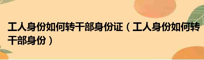 工人身份如何转干部身份证(工人身份如何转干部身份)