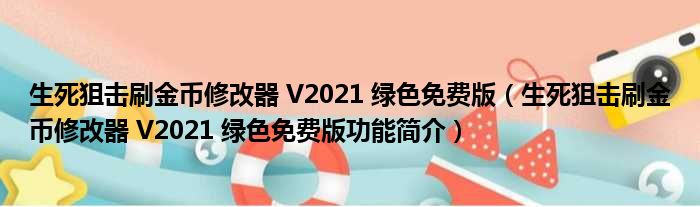 导读 大家好,关于生死狙击刷金币修改器 V2021 绿色免费版,生死狙击刷金币修改器 V2021 绿色免费版功能简介这个很多人还不知道,小勒来为大家
