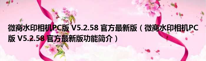 微商水印相机PC版 V5.2.58 官方最新版(微商水印相机PC版 V5.2.58 官方最新版功能简介)