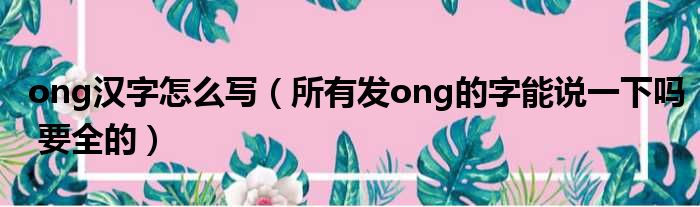 导读 大家好,今天小六子来为大家解答以下的问题,关于ong汉字怎么写,所有发ong的字能说一下吗 要全的这个很多人还不知道,现在让我们一起来看