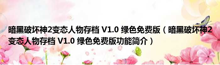 导读 大家好,关于暗黑破坏神2变态人物存档 V1 0 绿色免费版,暗黑破坏神2变态人物存档 V1 0 绿色免费版功能简介这个很多人还不知道,小勒来为