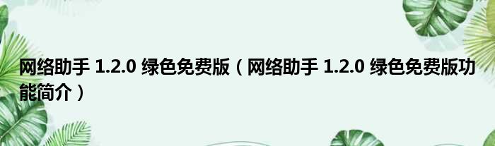 网络助手 1.2.0 绿色免费版(网络助手 1.2.0 绿色免费版功能简介)