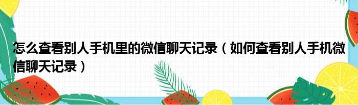 怎么查看别人手机里的微信聊天记录(如何查看别人手机微信聊天记录)