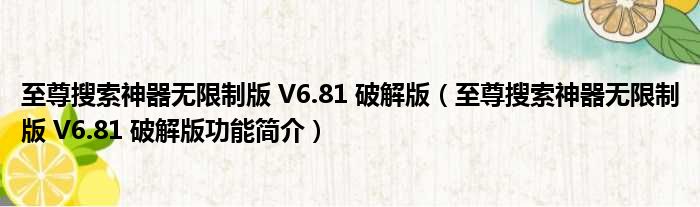 导读 大家好,关于至尊搜索神器无限制版 V6 81 破解版,至尊搜索神器无限制版 V6 81 破解版功能简介这个很多人还不知道,小勒来为大家解答以上