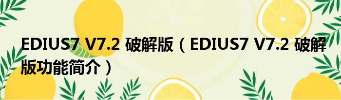 导读 大家好,关于EDIUS7 V7 2 破解版,EDIUS7 V7 2 破解版功能简介这个很多人还不知道,小勒来为大家解答以上的问题,现在让我们一起来看看吧