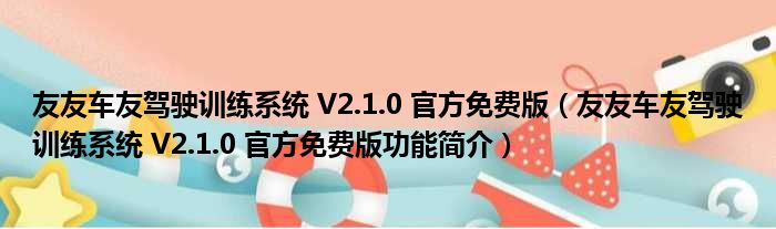 友友车友驾驶训练系统 V2.1.0 官方免费版(友友车友驾驶训练系统 V2.1.0 官方免费版功能简介)