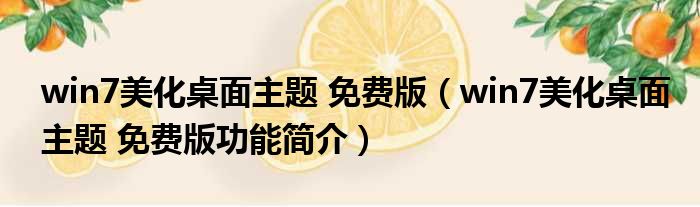 win7美化桌面主题 免费版(win7美化桌面主题 免费版功能简介)