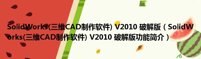 SolidWorks(三维CAD制作软件) V2010 破解版(SolidWorks(三维CAD制作软件) V2010 破解版功能简介)