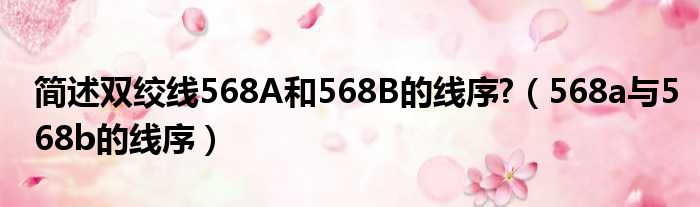 导读 大家好,今天小六子来为大家解答以下的问题,关于简述双绞线568A和568B的线序?,568a与568b的线序这个很多人还不知道,现在让我们一起来看看