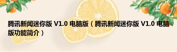 腾讯新闻迷你版 V1.0 电脑版(腾讯新闻迷你版 V1.0 电脑版功能简介)