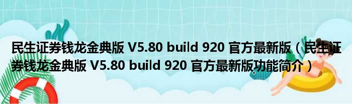 民生证券钱龙金典版 V5.80 build 920 官方最新版(民生证券钱龙金典版 V5.80 build 920 官方最新版功能简介)