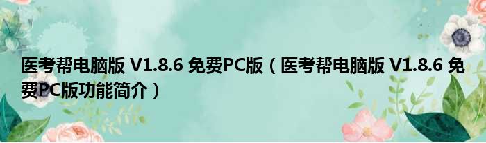医考帮电脑版 V1.8.6 免费PC版(医考帮电脑版 V1.8.6 免费PC版功能简介)