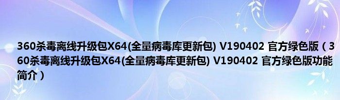 360杀毒离线升级包X64(全量病毒库更新包) V190402 官方绿色版(360杀毒离线升级包X64(全量病毒库更新包) V190402 官方绿色版功能简介)