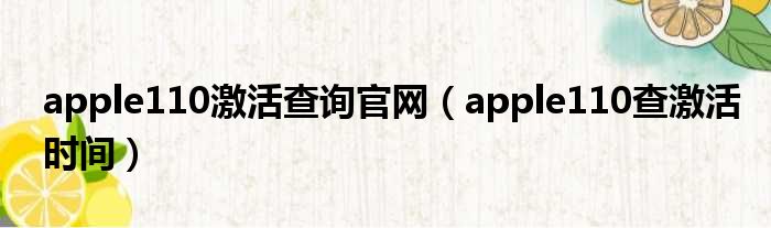 导读 大家好,今天小六子来为大家解答以下的问题,关于apple110激活查询官网,apple110查激活时间这个很多人还不知道,现在让我们一起来看看吧!1